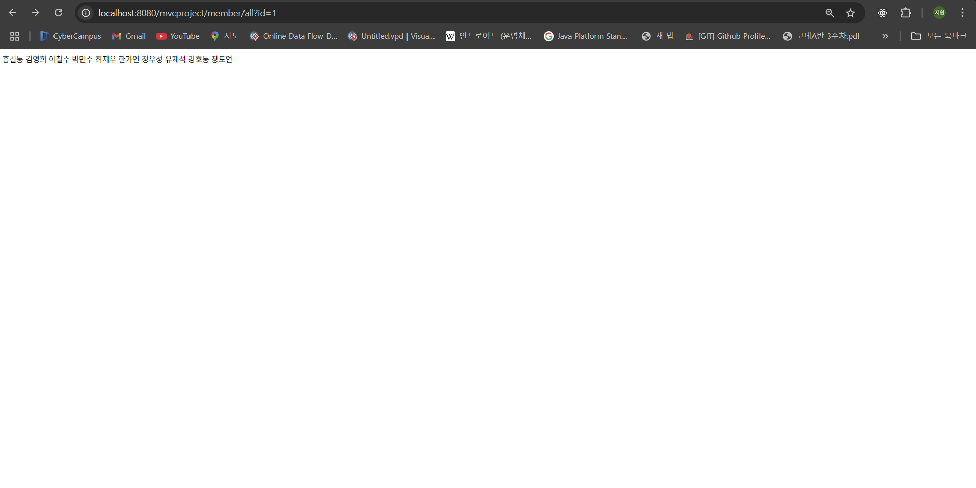 list로 주입 받은 dao에서 /member/all로 들어온 요청을 처리하여 세팅해준 뒤 jsp로 쏴주기