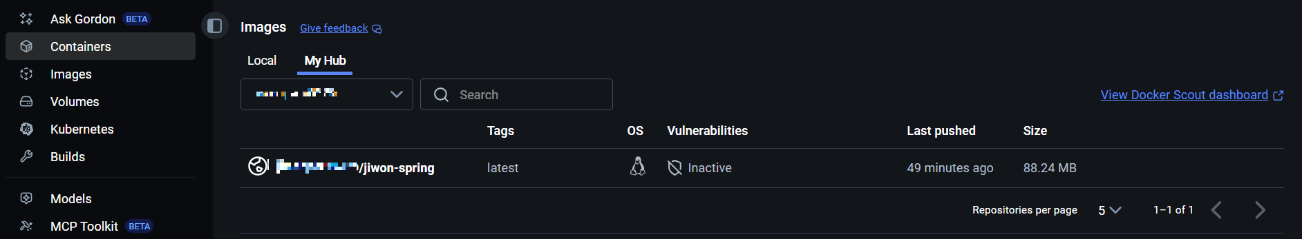 Docker Desktop으로 들어가 이미지가 잘 push되었는지 확인해보았다.