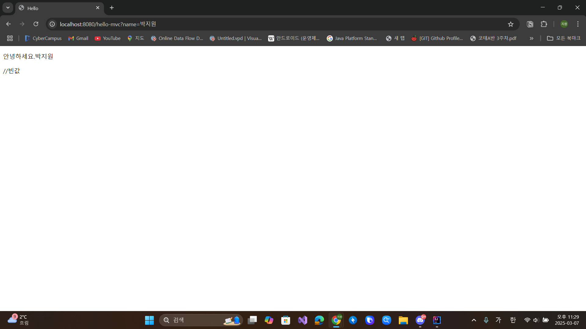 //http://localhost:8080/hello-mvc?name=박지원 << 이렇게 넣어주면 동적으로 매핑하여 실행한다.