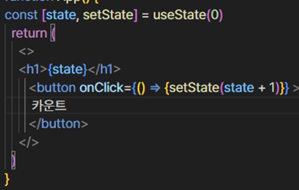 일반적인 선언 방식은, 주로 값을 저장할 때 가저올 state와 바꿀 값을 정해주는 함수 setState를 선언해준다.